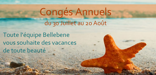 Toute l'équipe Bellebene sera en congés annuels du 30 Juillet au 20 Août.