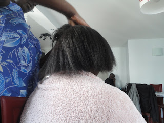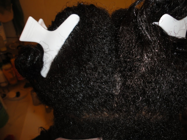 C'est Jessica qui m'a servi de cobaille (merci ma Jess). Jessica a les cheveux en transition, elle a arreté le défrisage il y a plus de 6 mois. Jessica ne souhaite pas faire son big chop tout de suite et comme vous le savez, faire coexister les deux textures est assez difficile. Les pointes défrisées s'abiment tandis que les racines crépues poussent en force.